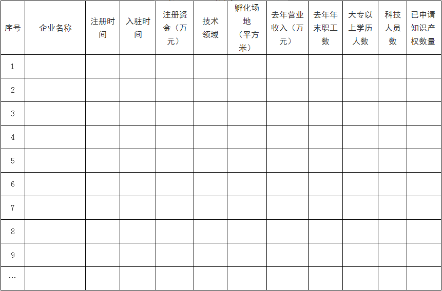 (六)在孵企業情況(在孵企業情況匯總表、在孵企業與孵化器簽署的孵化服務協議或入駐協議);