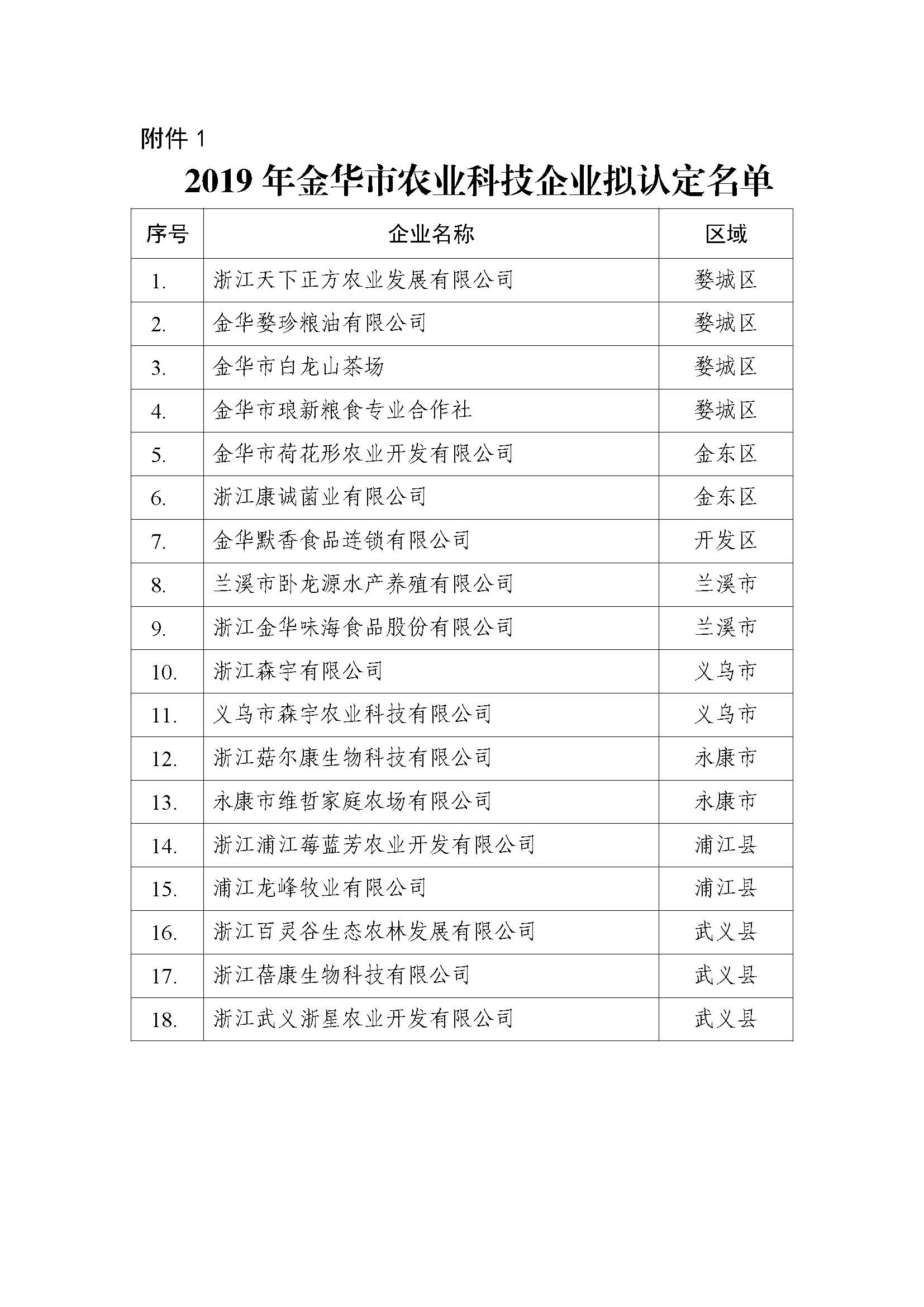 附件:1. 2019年金華市農(nóng)業(yè)科技企業(yè)擬認(rèn)定名單